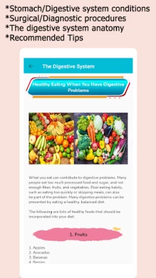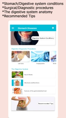 This app provides information on gastrointestinal diseases, digestive system diseases, digestive system anatomy, functions, recommended tips and stomach health tips. This medical book will provide you with proper information on intestinal diseases, home remedies and natural cures for simple cases such as acidity.