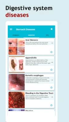 Stomach diseases and treatment app contains detailed information, high quality pictures and diagrams for all the diseases. The app is simple to use and does not require internet connection to function.