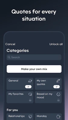 And when your lifestyle changes, so can your motivation. Simply go into the Motivation - Daily Quotes app and choose new categories. It’s that easy to adapt our quotes on the go to fit your ever-changing needs.